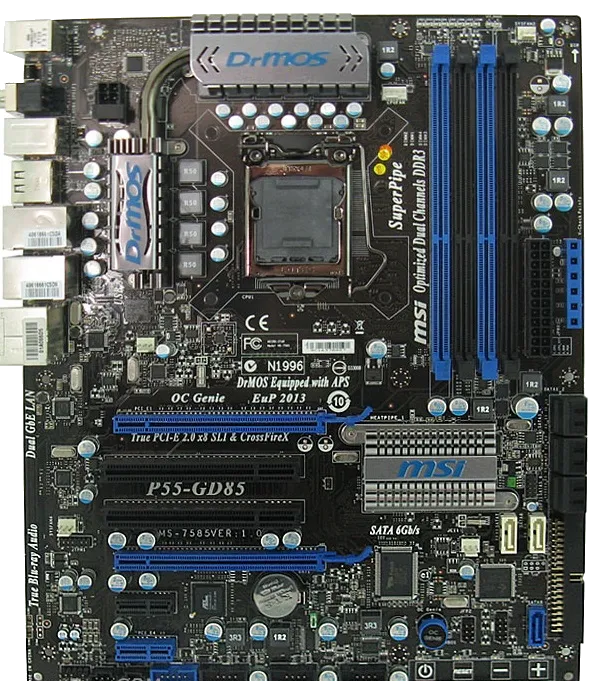 Какие комплектующие используются при ремонте материнской платы MSI P55-GD85?